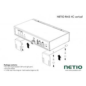 Mounting kit for 1 unit of NETIO 4C. Can be used inside 19" rack on the sides (vertical) or inside the rack. M6 rack mounting screws included.