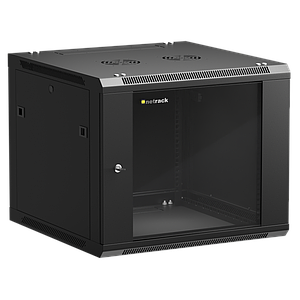 Netrack 19" wall-mount F-Line rack cabinet, 9U 600*600, glass door, black, flat-pack