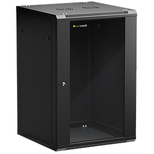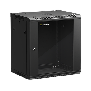Netrack 19" wall-mount F-Line rack cabinet, 12U 600*450, glass door, black, flat-pack