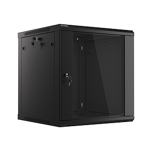 Lanberg wall-mount rack cabinet 19" 12U 600*600 with glass door (flat pack), black