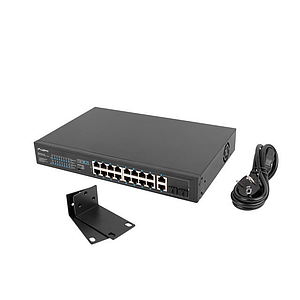 Lanberg unmanaged switch 16*100Mb PoE+/2*combo Gigabit 150W