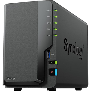 Synology tower NAS DS224+ up to 2 HDD/SSD, Intel Celeron J4125 2.0 GHz, 2GB DDR4, 2*1GbE, 2*USB 3.2 Gen 1