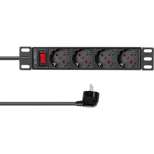 LogiLink plug socket strip, 4 Schuko sockets, 230VAC, 16A, black, 2m, IP20